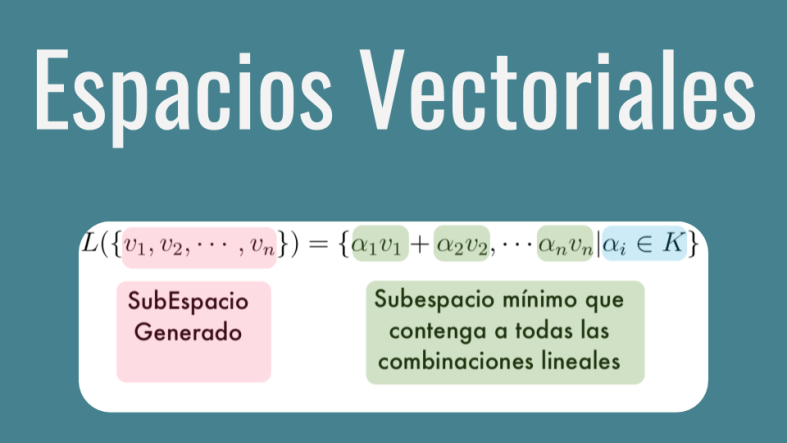 Un subespacio o espacio generado de un montón de vectores es el espacio vectorial mas pequeño que contiene a todos esos vectores.